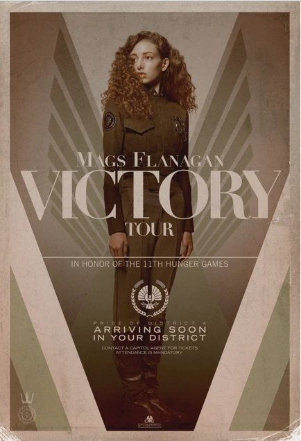 Mags Flanagan fue la vencedora de los 11.os Juegos del Hambre —a sus 16 o 17 años de edad—, así como la tributo femenino del Distrito 4 en los 75.os Juegos del Hambre, también conocido como el tercer Vasallaje de los Veinticinco. Se ofreció como voluntaria a pesar de su edad avanzada. Era la vencedora más anciana en participar del vasallaje con una edad que redondea entre los 80 años, según Katniss.