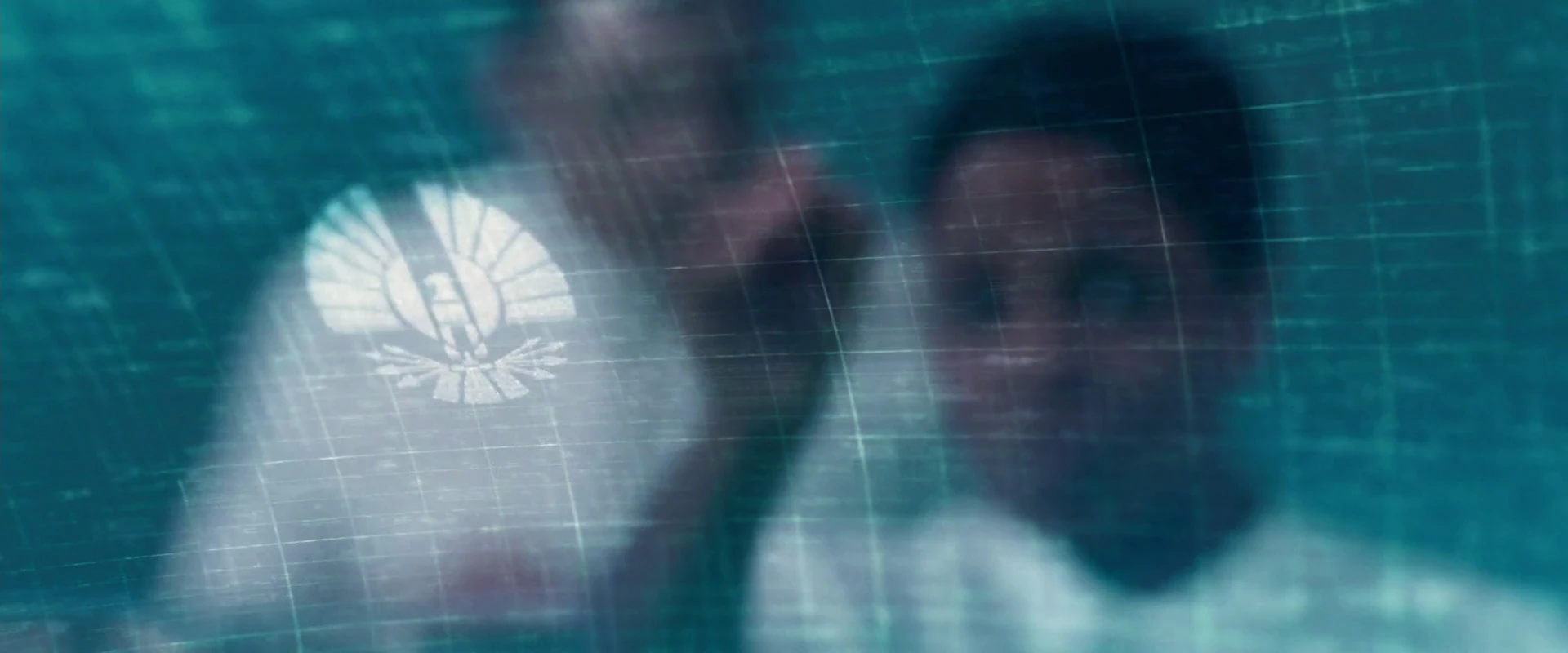 Durante los 74.os Juegos del Hambre las proyecciones aparecen por primera vez en la noche del primer día, mostrando las fotos de los 11 tributos que murieron en el baño de sangre. En la película deberían ser 12 proyecciones pero por un error solo se muestran 11. A lo largo de los juegos muestran las fotos de los otros 10 tributos.